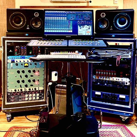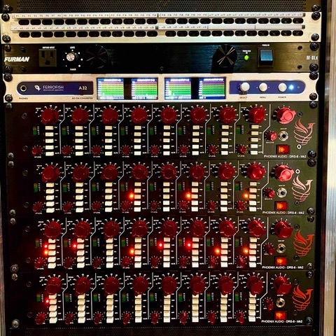 I designed my audio system to allow use of all these preamps, analog summing, and outboard gear collection on location, easily. All the gear is in shockmounted road cases so I can tour with it or bring on location for high quality input. The system has 64 channels of IO so my hardware is all TT patchbay normalled for Pro Tools inserts but can be patched for destructive tracking. This rig is currently hooked up to the HD Native card in my Mac Pro but it can also work with a USB cable into a laptop or straight into my live professional audio consoles (AVID) at 96Khz over MADI. I can have this rack of 32 DRS preamps on stage and then route the signal over MADI to FOH and have Class A input into a digital desk at 96Khz! Tech is awesome.